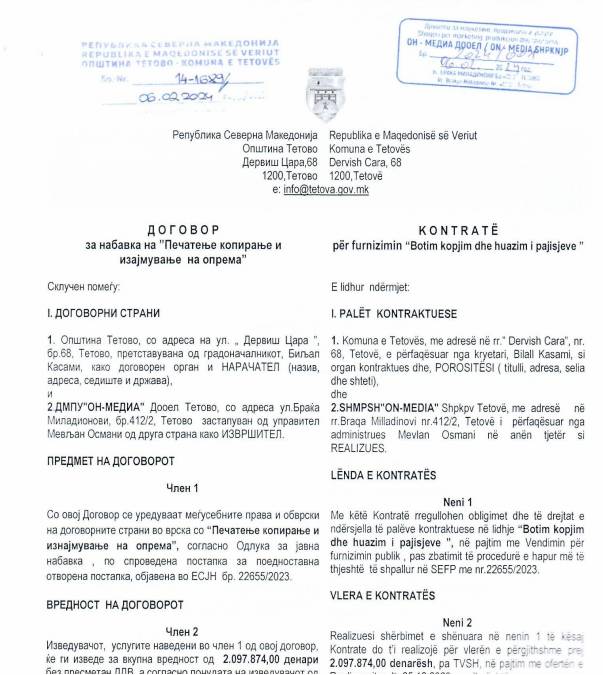 Këto janë vetëm disa nga dokumetet që janë publikuar, sqarim, indeks.mk ka edhe dokumentacionin e plotë të kësaj marrëveshje, “kontrate” mes Komunës dhe “On Media”./indeks.mk/