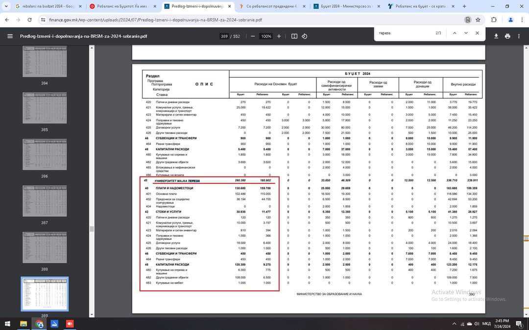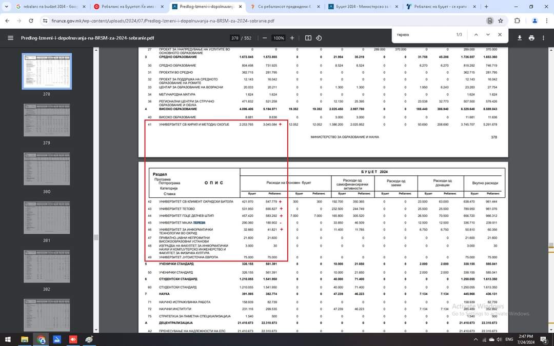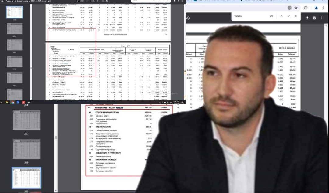 Profesori universitar, Rilind Ademi përmes një statusi në rrjetet sociale ka njoftuar se Qeveria përmes ri-balancit të buxhetit ka “dënuar” universitetin “Nënë Tereza” kurse nga ana tjetër, ka shpërblyer univeristetin Kirili dhe Metodij.
